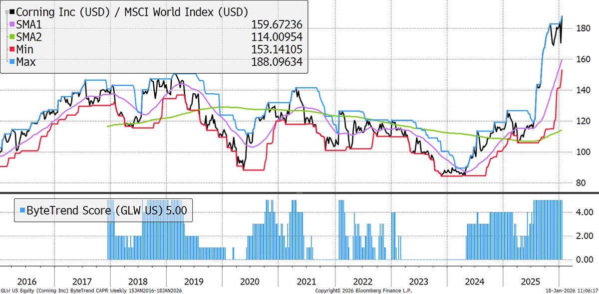 Corning is a leader in materials science with key businesses in optical communications, display technologies, and life sciences. It divested its wireless infrastructure unit in early 2025, allowing it to focus on higher-value areas like AI-driven optical fibre and solar manufacturing.