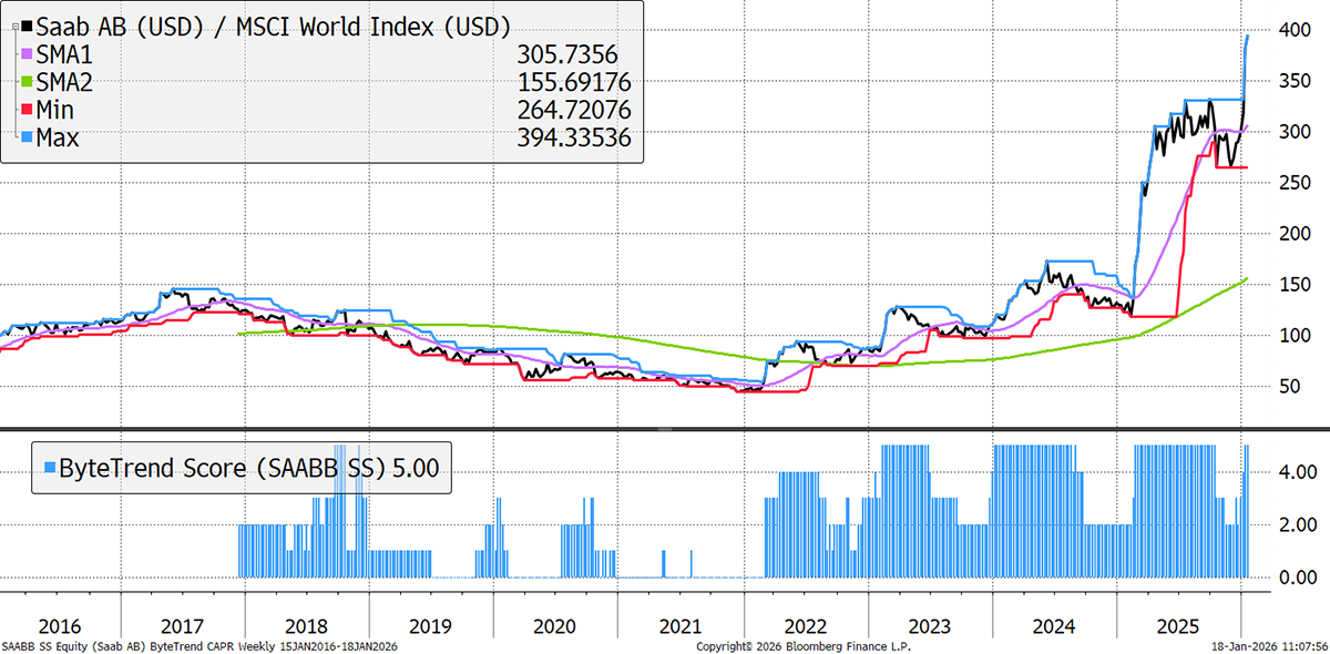 Swedish SAAB no longer makes cars. It is now a defence/aerospace business, driving Scandinavia’s rearmament. From warships and submarines to remote missile systems, recent orders have been large, driven by domestic supply chain preferences and Trump’s rhetoric and EU defence spending.
