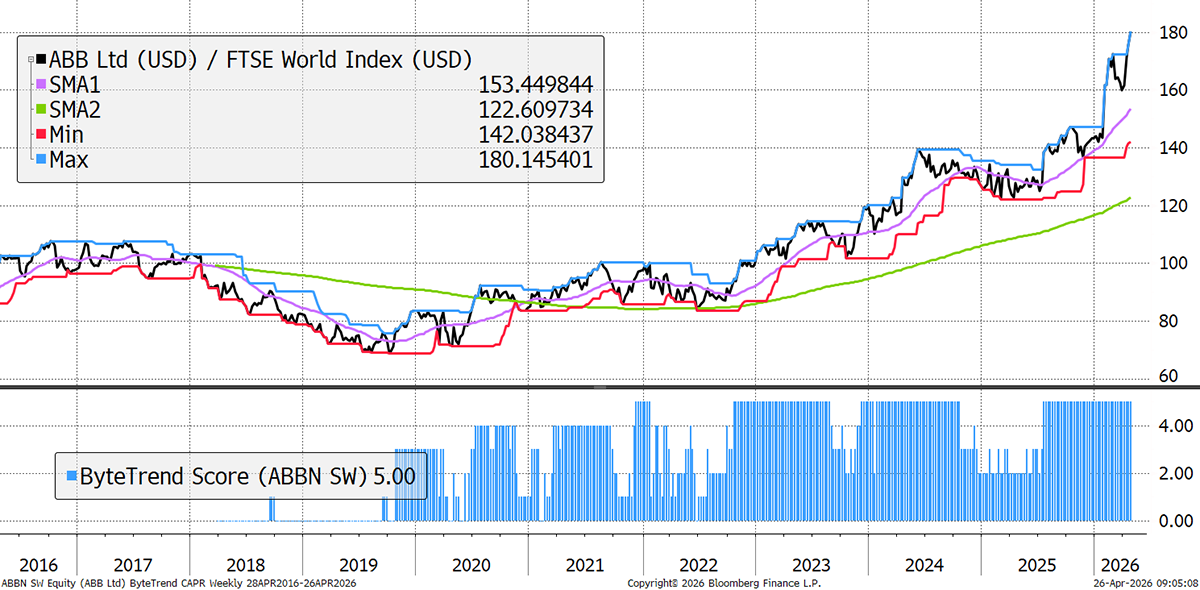 It’s a similar story for ABB, whose electrical, automation, and digital technology products benefit from AI-linked infrastructure demand, especially data-centre power and industrial automation. Last quarter’s results showed 24% YoY growth, along with a record-high order intake.