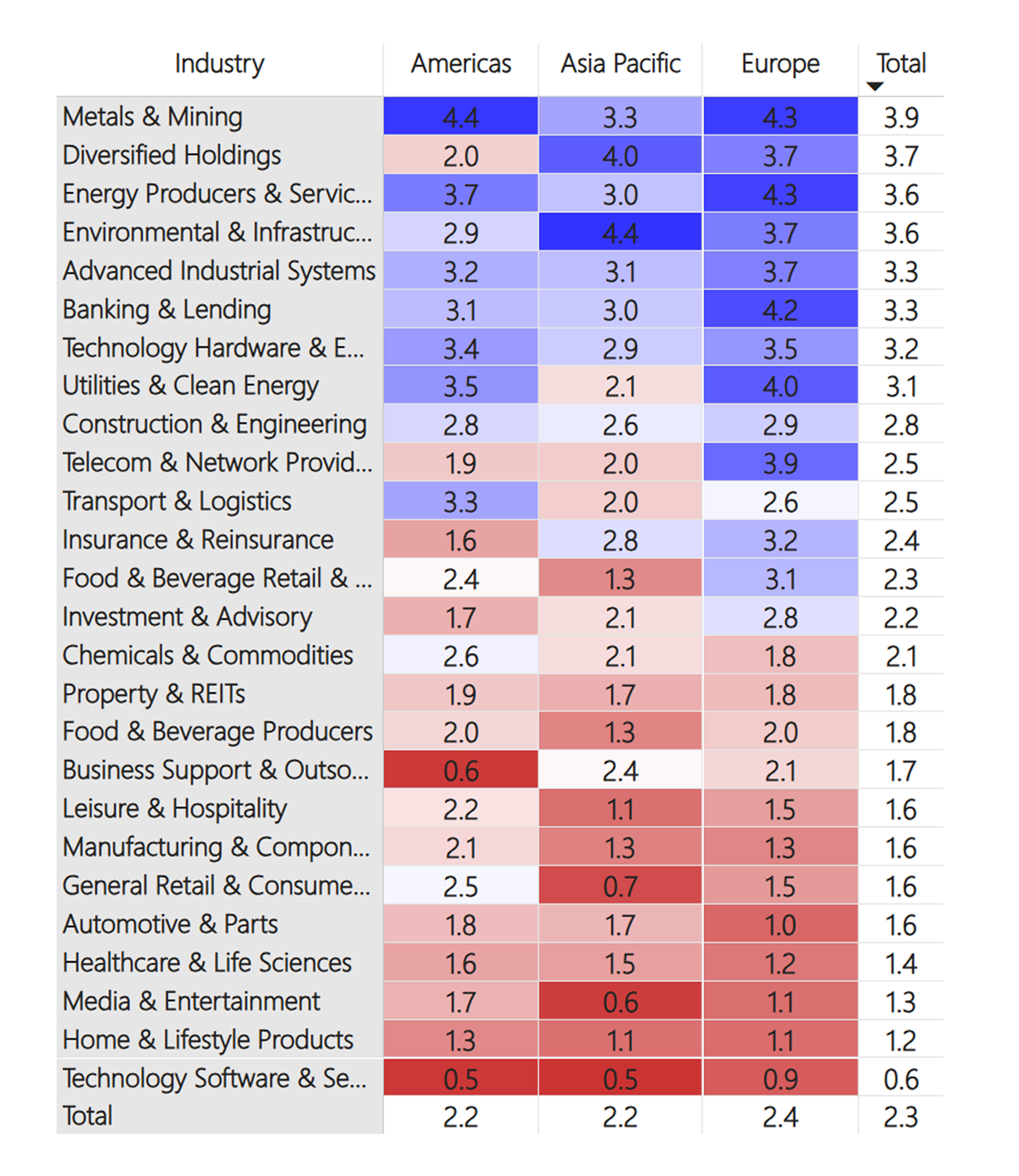 Regions and Industries Average CAPR Score