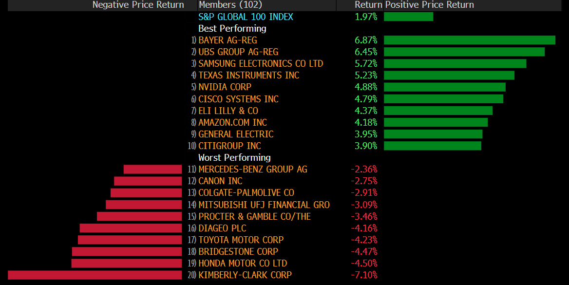 In the best-performing large companies, there were several tech stocks, but the winner was Bayer, one of the early high-quality stocks to show signs of a long-term turnaround. The losers were dominated by high-quality stocks (consumer defensives) and autos.