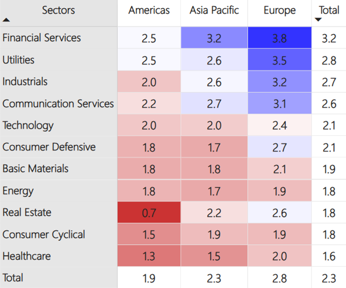Average ByteTrend Score by Region and Sector Heatmap - CAPR