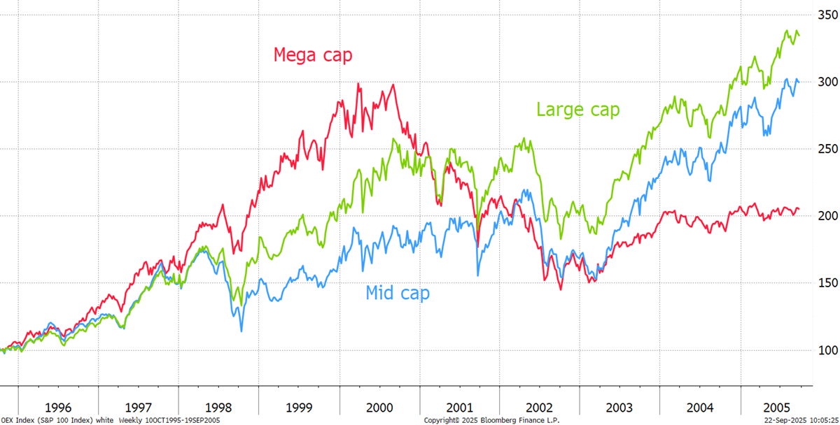 Have we seen this before? Naturally, we have. In the late 1990s, the technology and related stocks became very large as valuations soared. The mega-caps led the way until the top and then collapsed. Investors in the rest of the market didn’t fare too badly.