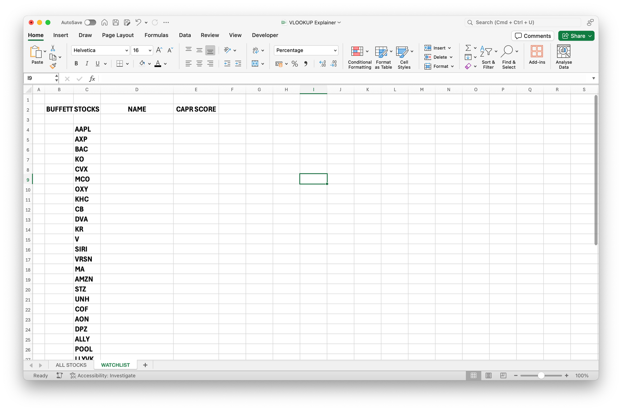 Having set it up once, it’s reasonably easy to copy the system over into another tab for a new watchlist or portfolio.