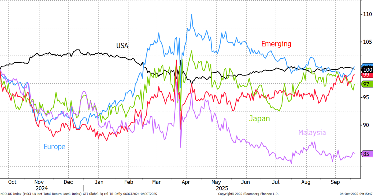 Our guest market this week is Malaysia, which led the increase in trend classification this week, meaning it had more improving trends than deteriorating trends – a net winner. Emerging markets and Europe are a little stronger, but the main observation is that the major markets continue to trade in a tight pack. With a new prime minister, Japan is the great hope.