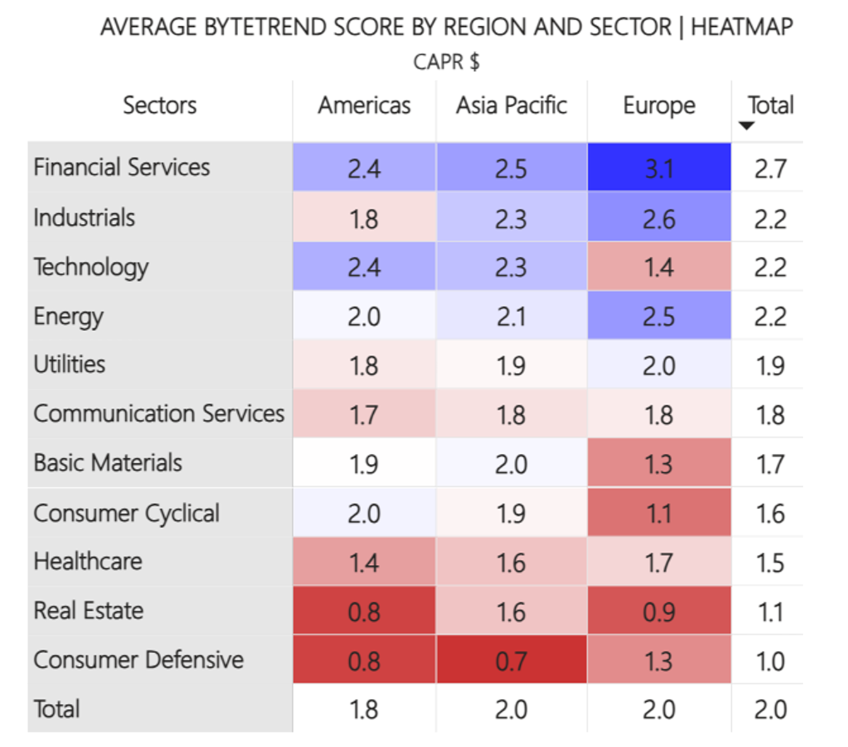 Average ByteTrend Score by Region and Sector Heatmap - CAPR