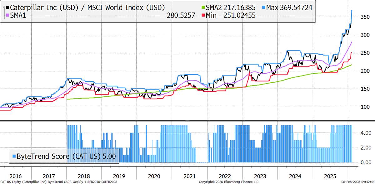 These stocks are trading at the 30-week CAPR highs with a ByteTrend Score of 5. All charts shown are CAPR rebased to 100.