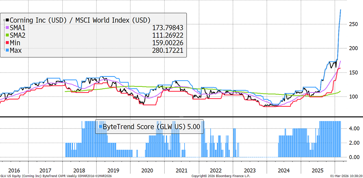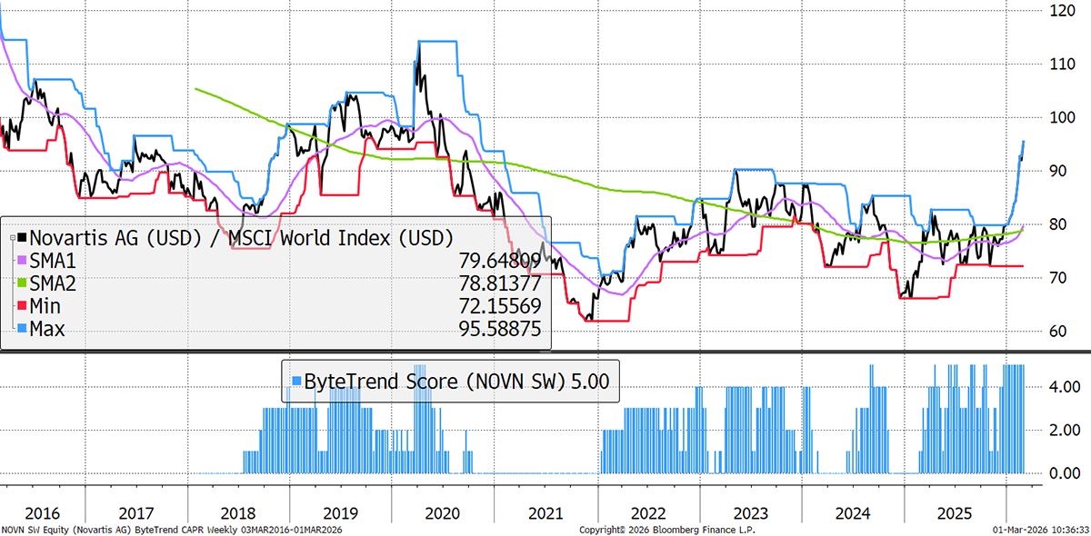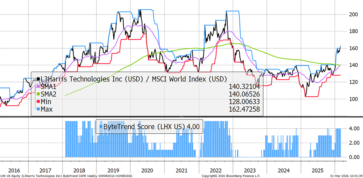 These stocks are trading at the 30-week CAPR highs with a ByteTrend Score of 5. All charts shown are CAPR rebased to 100.