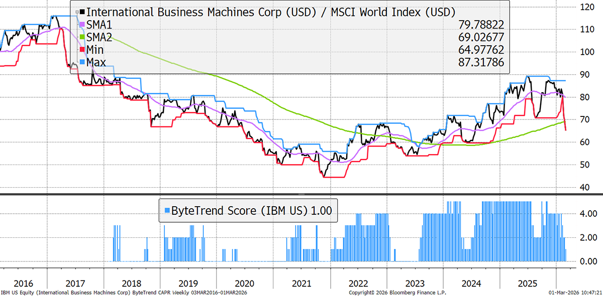 IBM suffered its worst fall in 25 years last week, as Anthropic released a tool that could read and improve IBM’s COBOL computer language. COBOL is used in 95% of U.S. ATM transactions and critical finance/government systems. This tool sparked fears of disruption to IBM's lucrative mainframe (zSystems) and consulting business, where COBOL modernisation services form a key moat. Essentially, it was added to the “vulnerable to disruption” list.