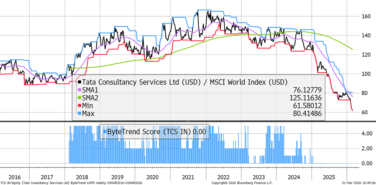 TATA Consultancy faces the same disruption threat, but also faces the added geographic headwind. India’s bull market ended long ago, and high valuations have left companies exposed. Companies are reducing spending on IT and consultants to focus on deploying AI, putting pressure on growth and margins at the likes of TATA. Growth was especially weak in America and in its tech services business.