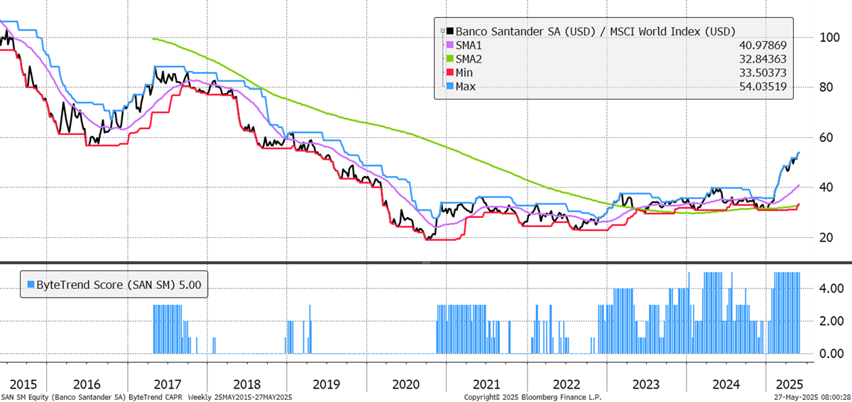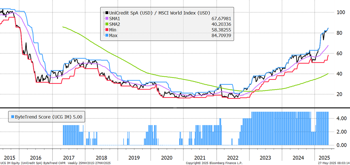 Italian bank UniCredit delivered a record net profit and its best-ever quarterly results in Q1 2025, with strong growth in fee and trading income, offsetting a decline in net interest income. It has been a remarkable turnaround and still trades at 1.5x book. It is no surprise that capital flows back into Europe are finding their way to the banks.