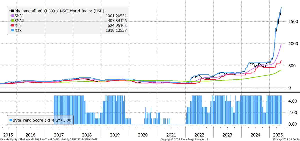 German defence company Rheinmetall has a great chart. JD Vance’s speech in Europe feels like it took place in a different world, and the stock is up threefold in just a few months since then. It is receiving a huge number of new orders for military equipment, as European nations are spending more on defence due to recent conflicts, and the US is looking to step back from global protection. There is so much catching up to do in Europe, but the optimism now baked into Rheinmetall’s share price is extreme. A PE of 65x is rich.