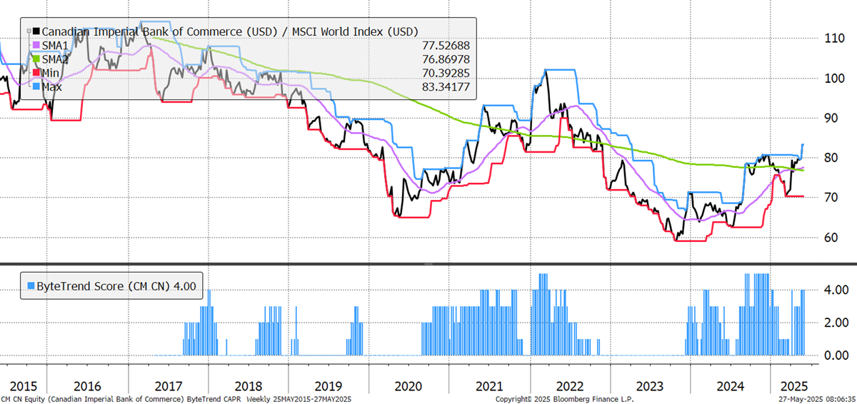 | CM | CAD | CIBC | 4 | 0 | 18 | 17 | 64 | Finance | Banks |