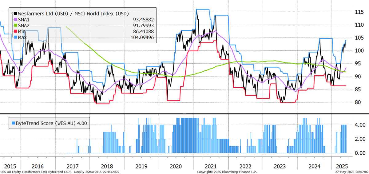 | WES | AUD | Wesfarmers | 4 | 0 | 21 | 19 | 61 | Con Cycl | Home Impr |