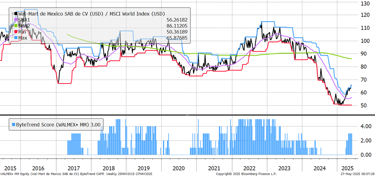 | WALMEX | MXN | Walmart de México | 3 | 0 | 32 | 29 | 60 | Con Disc | Discounters |