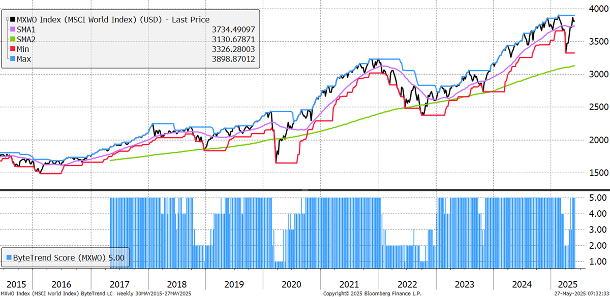 The World Index has maintained a ByteTrend Score of 5 for most of May. The index is yet to make an all-time high, but the state of the market is welcome compared to what we saw in April.