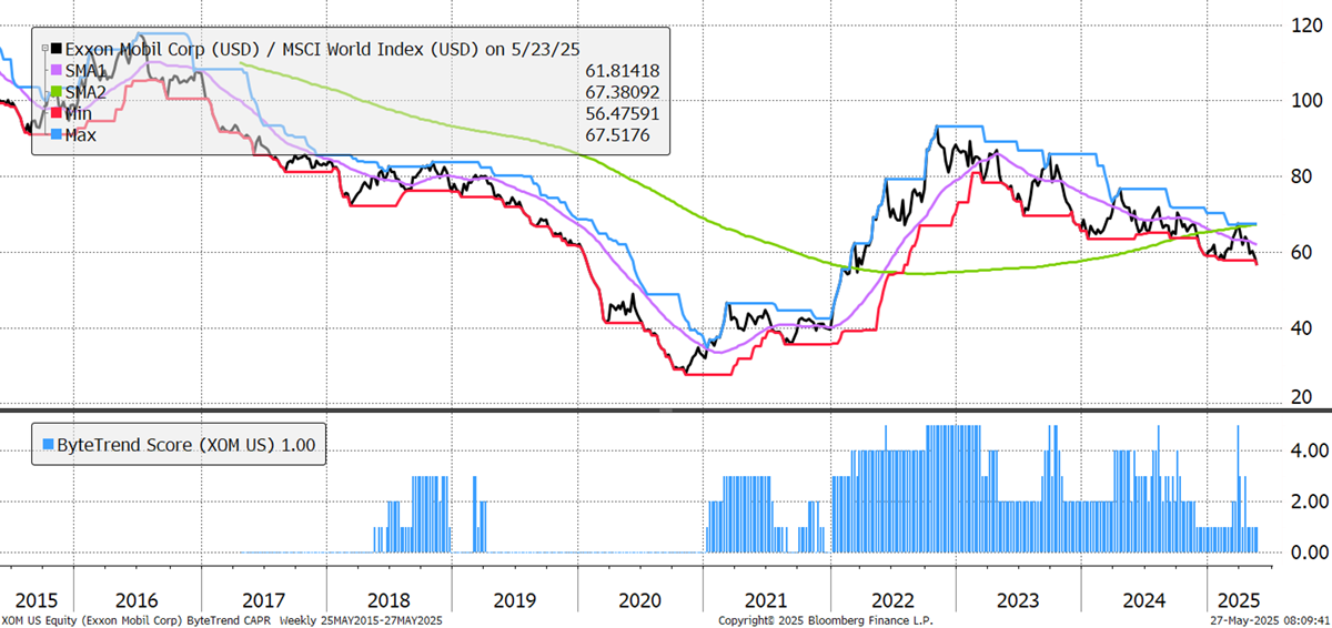 Once one of the world’s most valuable companies, Exxon reported that persistent oil price weakness, legal risks, and potential tariff impacts weigh heavily on it, along with the sector. Q1 2025 earnings were $7.7 billion, with strong cash flow and industry-leading shareholder returns, despite lower profits due to weaker refining and chemical margins. This does not bode well for the oil sector.