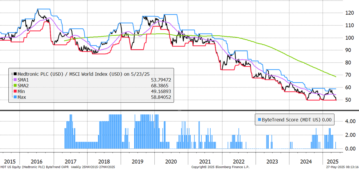 US medical device company Medtronic is focusing on innovation to drive growth, but faces persistent margin pressures and regulatory challenges in key markets. While its diversified medical device portfolio supports resilience, execution risks and slower-than-expected growth in some segments temper the long-term outlook.
