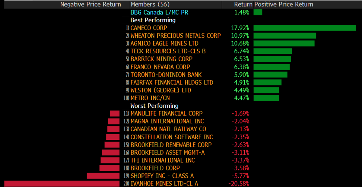 One country that stands out this week is Canada. It has several emerging trends, and I show the leaders and laggards over the past week. There’s some gold mining, but also large banks on the move alongside uranium and other great businesses. The laggards resemble US-facing companies. Canada probably deserves more credit.