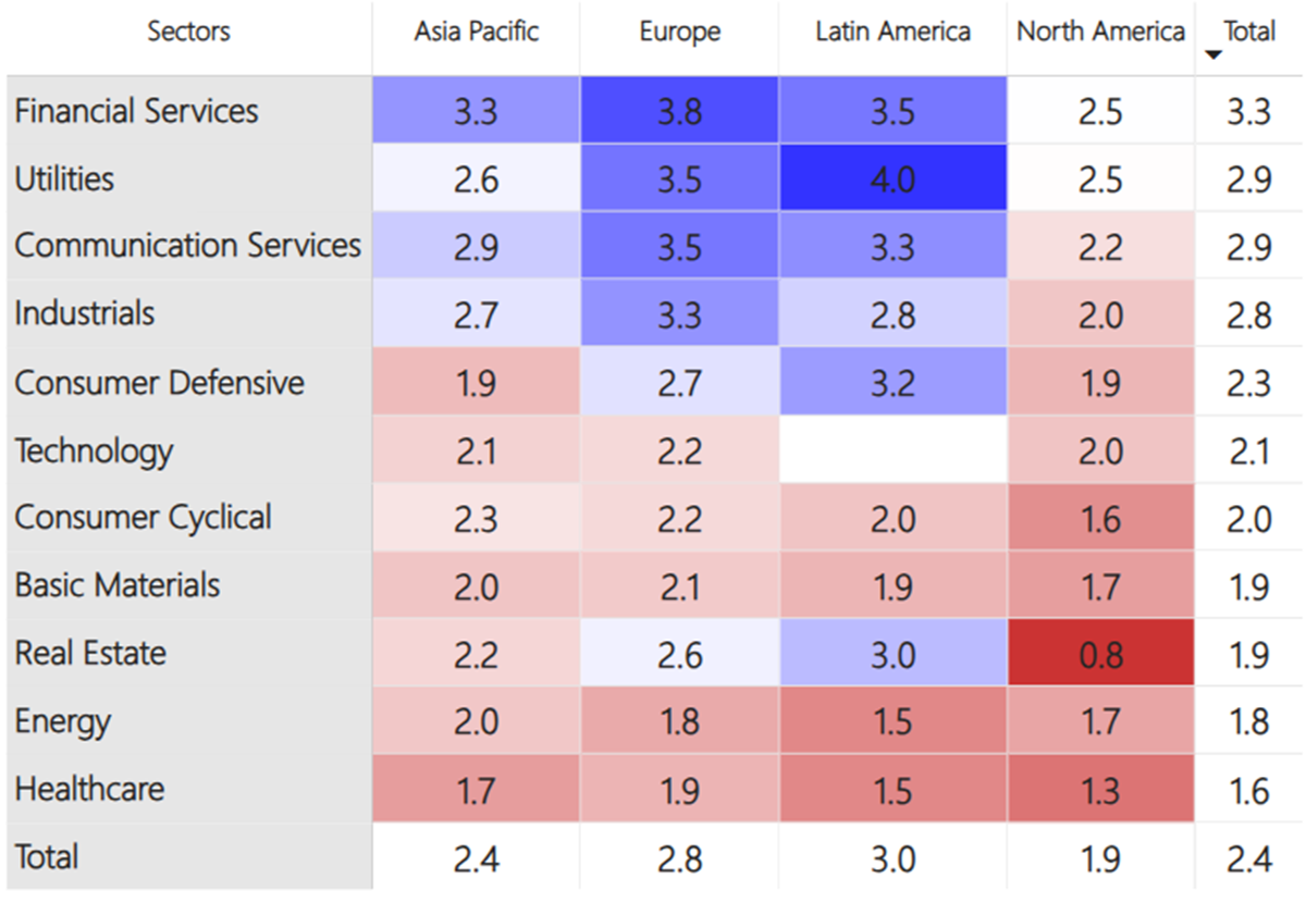 Average ByteTrend Score by Region and Sector Heatmap - CAPR