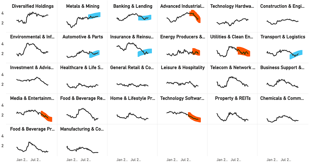 The insurance industry has been thriving thanks to higher interest rates. These have allowed pension plans to re-attain a stable funding position, allowing them to “sell” management of the assets and liabilities to insurance firms. The growth of these “Pension Risk Transfers” has driven sales growth for the industry. It’s early days, but the sector has started to pick up.