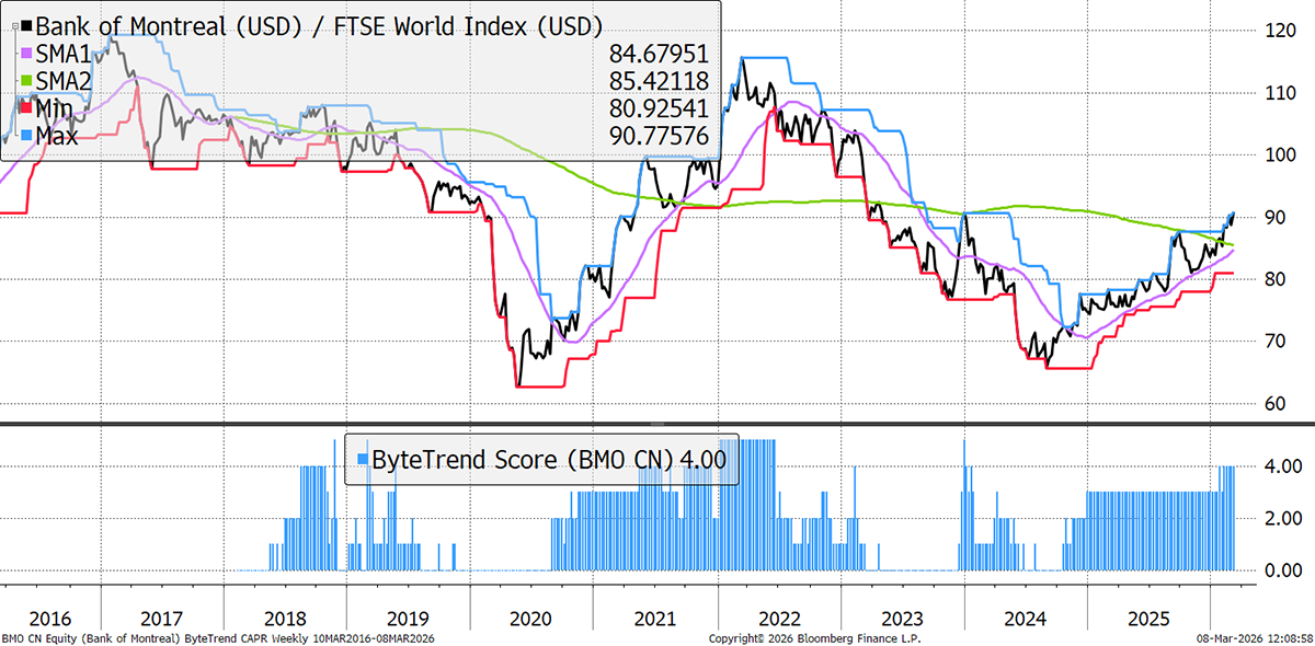 Canada is an energy producer with no exposure to military damage (unlike Middle Eastern peers), making it a prime beneficiary of the spike in oil prices. With its gold industry already enjoying a bumper period, adding oil profits to the mix boosts the outlook for Canada’s banks.