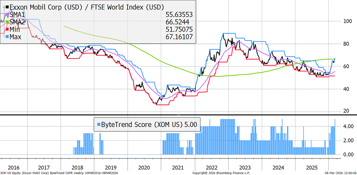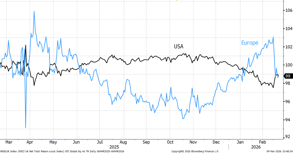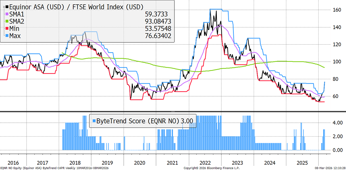 Norway is another country that sees the benefits of higher oil prices without the physical risks that Middle Eastern producers are enduring. It also owns and operates a large portfolio of renewables, notably North Sea and US offshore wind, which have held it back in recent years. However, the markets are currently seeing alternative assets as beneficiaries of an oil crisis, while its core fossil fuels businesses are strong relative to the broader market.