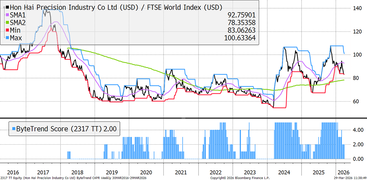 Hon Hai is known to us as Foxconn, the world's largest contract electronics manufacturer, building iPhones, EVs, and AI equipment for clients like Apple and Nvidia. Its financial performance is very strong, given its AI exposure, but heavy capex requirements are a fear, and a profit miss in its latest results on thinner margins caused concern. They are negatively impacted by the shortage of memory chips.