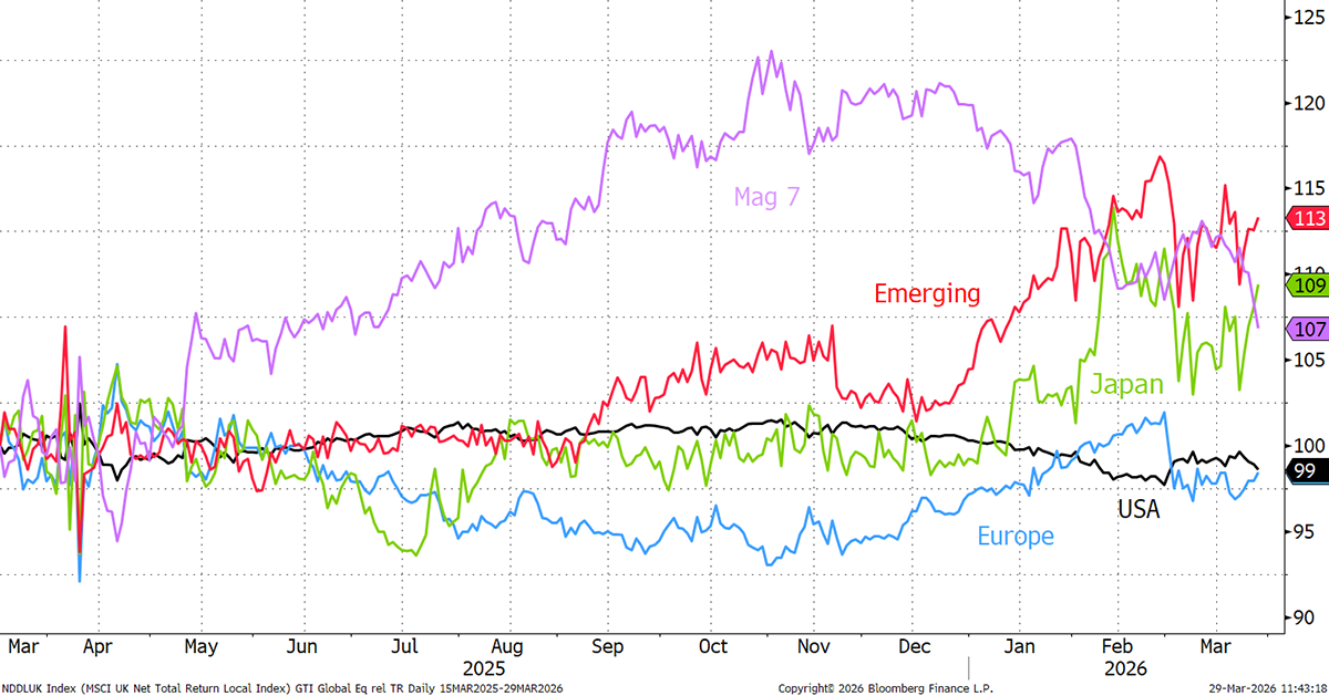 The US is lagging the world, as CAPR returns to Emerging Markets, Europe and Japan. The weakness of the Magnificent 7, i.e. the largest US tech stocks, explains this.